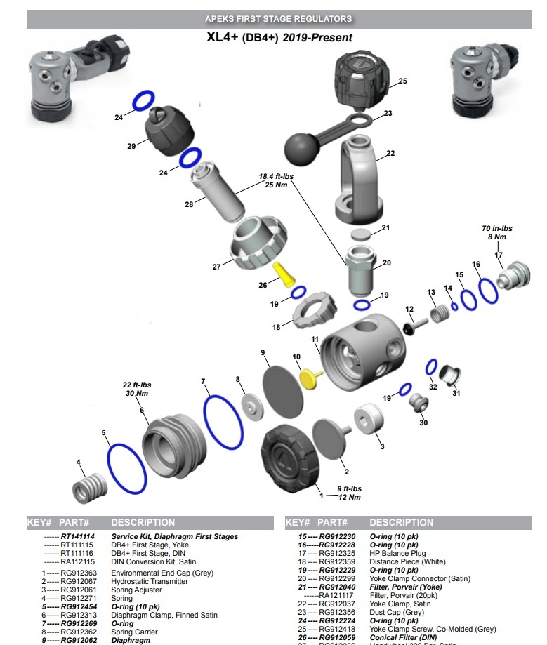 25 - Apeks INT-Anschluss XL4 - Yoke Clamp Screw Co-Molded Grey XL4 XL4 Part Nummer auf der Explosionszeichnung = 23