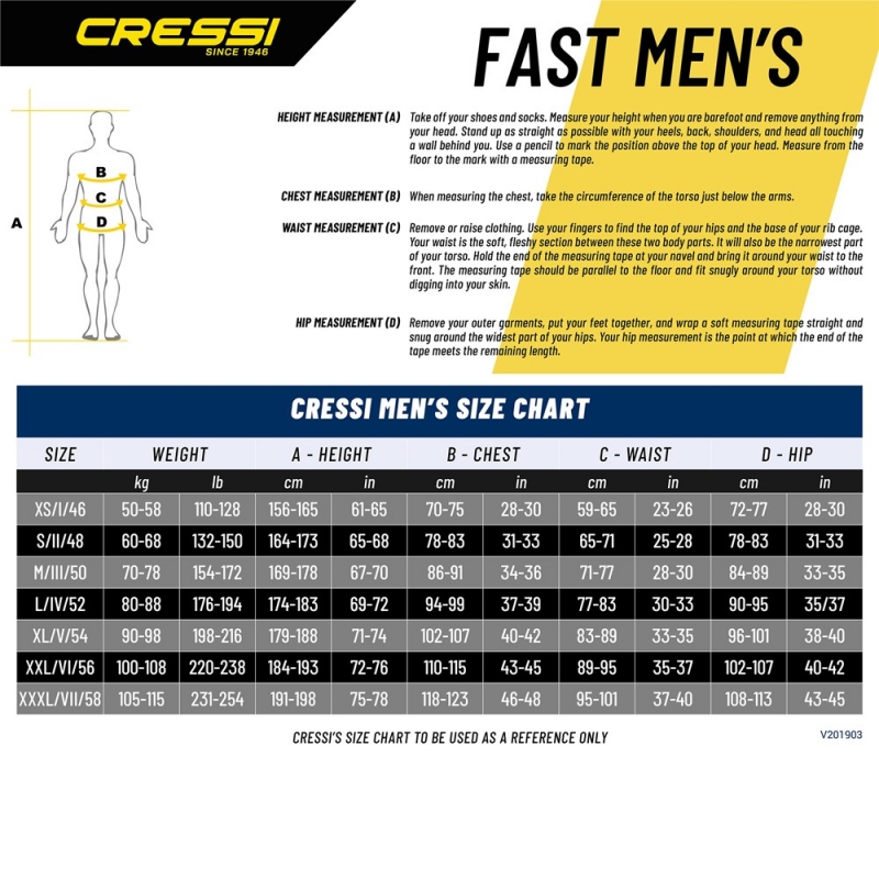 Alle Modelle aus der Fast-Serie sind stylish, äußerst komfortabel und können in den verschiedensten Temperaturbereichen verwendet werden. Der Fast 3 mm ist gefertigt aus strapazierfähigem Premium-Neopren, doppelt kaschiert. Vorgeformte Beine verbessern die Beweglichkeit und erleichtern den Beinschlag. Selbstverständlich hat auch der Fast 3 die legendär gute Cressi-Passform und ist mit viel Liebe zu Details entwickelt worden. Traditionell Cressi eben.