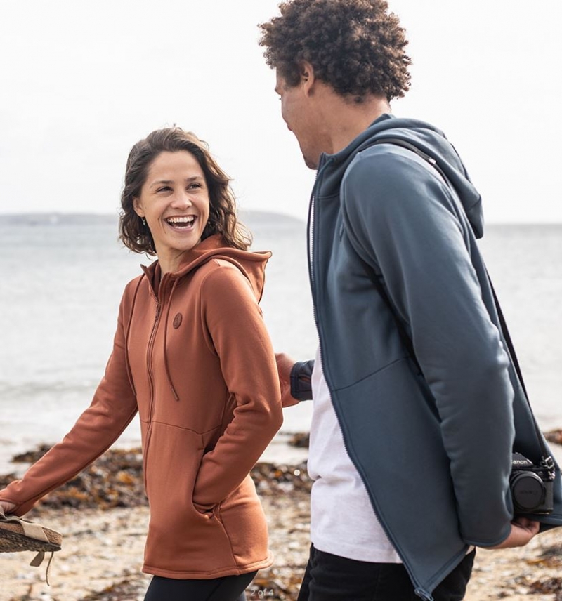 Mit großzügiger Tasche, Daumenschlaufen und einer tiefen Kapuze findet der Hoodie den Weg aus Ihrer Tauchtasche und in Ihre Alltagsgarderobe.