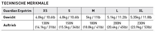 - der Auftriebskörper ist von den Schultern getrennt, was mehr Kompfort im Schulterbereich bedeutet, wenn er aufgeblasen ist.