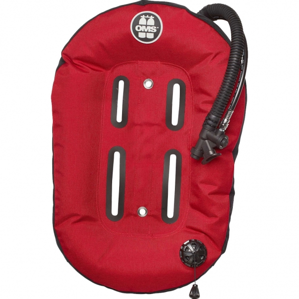 Die OMS Performance Mono Wings sind ein klassischer Donut-Stil. Der Flügel hat einen in den Inflator integrierten Pull-Dump-OVP an der linken Schulter und einen OVP an der linken Hüfte und zwei Blasen. Die äußere Blase hat einen TPU-Laminat. Die zweite Blase ist ultraschallgeschweißt. Die äußere Blase hat einen YKK-Reißverschluss mit großen Zähnen.
