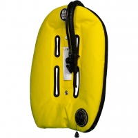 Die OMS Performance Mono Wings sind ein klassischer Donut-Stil. Der Flügel hat einen in den Inflator integrierten Pull-Dump-OVP an der linken Schulter und einen OVP an der linken Hüfte und zwei Blasen. Die äußere Blase hat einen TPU-Laminat. Die zweite Blase ist ultraschallgeschweißt. Die äußere Blase hat einen YKK-Reißverschluss mit großen Zähnen.
