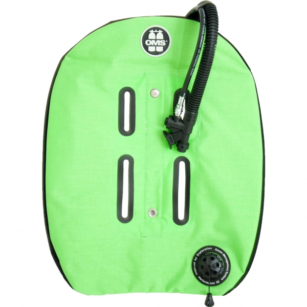 Die OMS Performance Mono Wings sind ein klassischer Donut-Stil. Der Flügel hat einen in den Inflator integrierten Pull-Dump-OVP an der linken Schulter und einen OVP an der linken Hüfte und zwei Blasen. Die äußere Blase hat einen TPU-Laminat. Die zweite Blase ist ultraschallgeschweißt. Die äußere Blase hat einen YKK-Reißverschluss mit großen Zähnen.