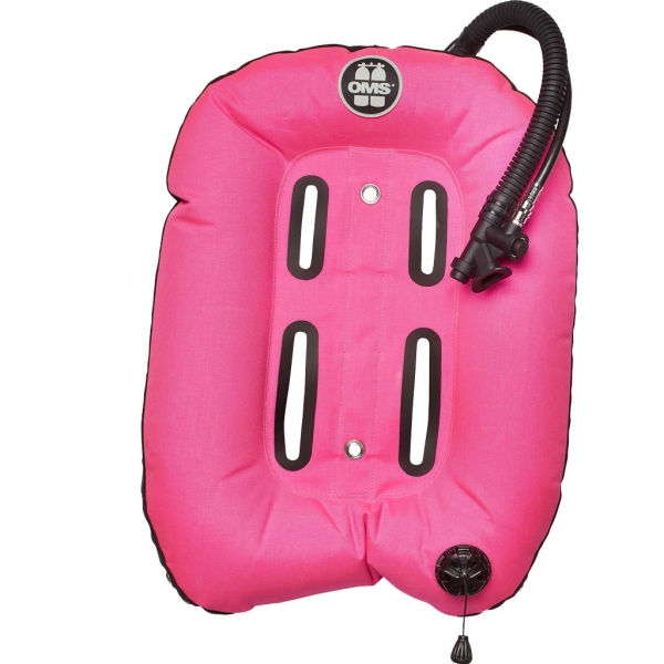 Die OMS Performance Mono Wings sind ein klassischer Donut-Stil. Der Flügel hat einen in den Inflator integrierten Pull-Dump-OVP an der linken Schulter und einen OVP an der linken Hüfte und zwei Blasen. Die äußere Blase hat einen TPU-Laminat. Die zweite Blase ist ultraschallgeschweißt. Die äußere Blase hat einen YKK-Reißverschluss mit großen Zähnen.