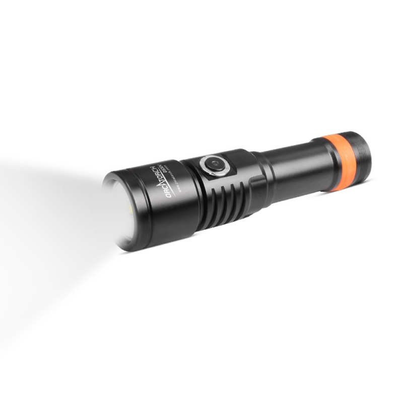 OrcaTorch D530V ist eine professionelle Unterwasser-Videoleuchte. Es hat 120 Grad superbreites Flutlicht ohne toten Winkel für Unterwasserfotografie. Die Leuchte verfügt über einen Seitenschalter aus Titanlegierung, der 2 Beleuchtungsmodi bietet, dies ermöglicht eine einfache Bedienung unter Wasser. Der Akku verfügt über einen integrierten Ein-/Ausschalter und zeigt außerdem die verbleibende Ladekapazität des Akkus an.