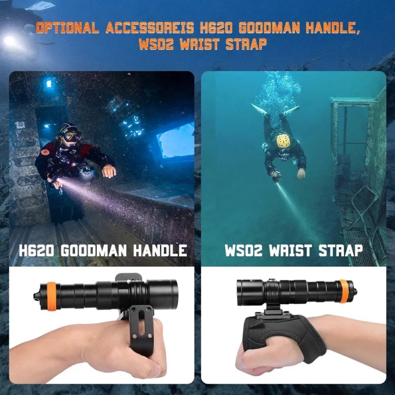 Die äußerst beliebte Tauchlampe OrcaTorch D710 ist die Grundlage für eine Reihe von Varianten. Neben der D710 gibt es die D710V speziell für Unterwasserfotografie und -videografie, die ZD710 mit veränderbarer Strahlbreite und die DC710, die an der WS02-Handschlaufe oder dem H620-Goodman-Griff montiert werden kann. Wenn Sie also beim Tauchen beide Hände frei haben möchten, aber dennoch eine helle Tauchlampe wünschen, ist die DC710 die richtige Wahl für Sie.