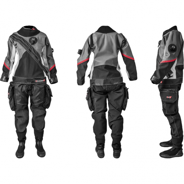 Der E.Motion + Trockenanzug ist eine optimale und ultimative Kombination aus Leichtigkeit und Flexibilität des E.Motion Trockenanzugs und der exklusiven Haltbarkeit des E.Lite-Gewebes. Beide Funktionen in modernem und elegantem Schnitt bieten höchsten Komfort beim Tauchen.