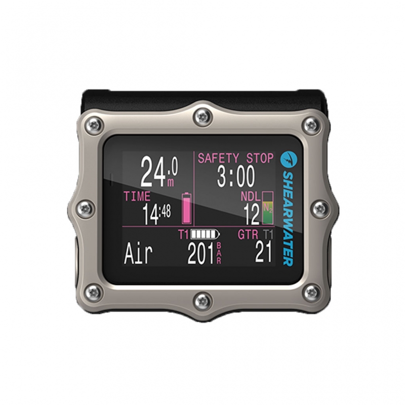 Die Luftintegration mit bis zu vier Shearwater-Sendern lässt Spielraum, um von einem ersten Computer zu einer leistungsstarken, bewährten, fortschrittlichen technischen Tauchlösung zu wachsen. Dies wird mit der bewährten und leicht zu findenden, vom Benutzer austauschbaren einzelnen AA-Batterie und dem vertrauten ergonomischen, kompakten Formfaktor geliefert.