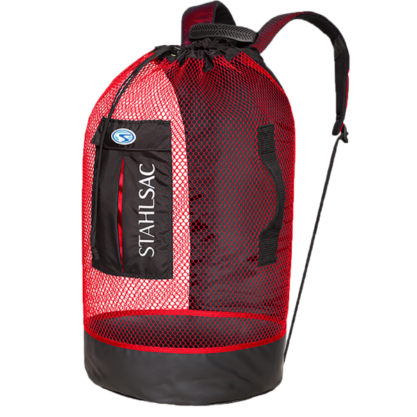 Der Stahlsac Panama Mesh Backpack ist das am häufigsten kopierte Design im Tauchsport und verfügt über zwei gepolsterte Schultergurte aus hochdichtem Schaumstoff, ein besonders strapazierfähiges Polyesternetz, Tragegriffe für Seesäcke und eine einzigartige Innentasche mit Reißverschluss, die sich kombinieren läßt mit einer feuchten Tasche außerhalb.