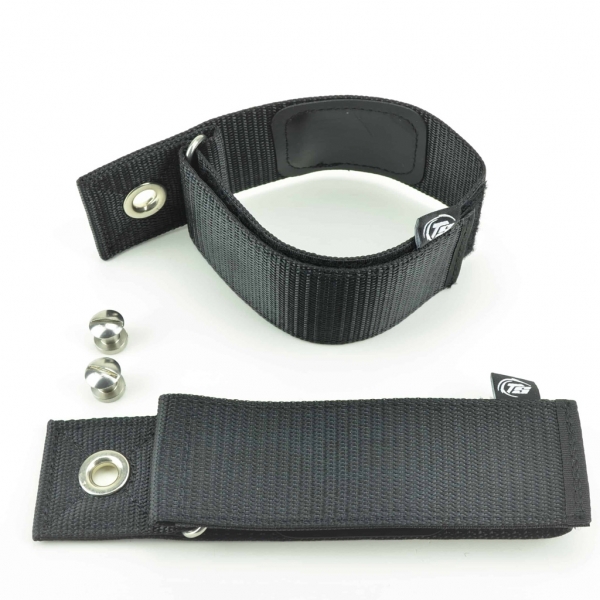 Mit diesen Straps können Tariergasflaschen oder auch Akkutanks am Backplate befestigt werden. Die Größe eignet sich z.B. für Aluminiumflaschen mit 1 L Volumen oder Stahlflaschen mit 2 L Volumen.