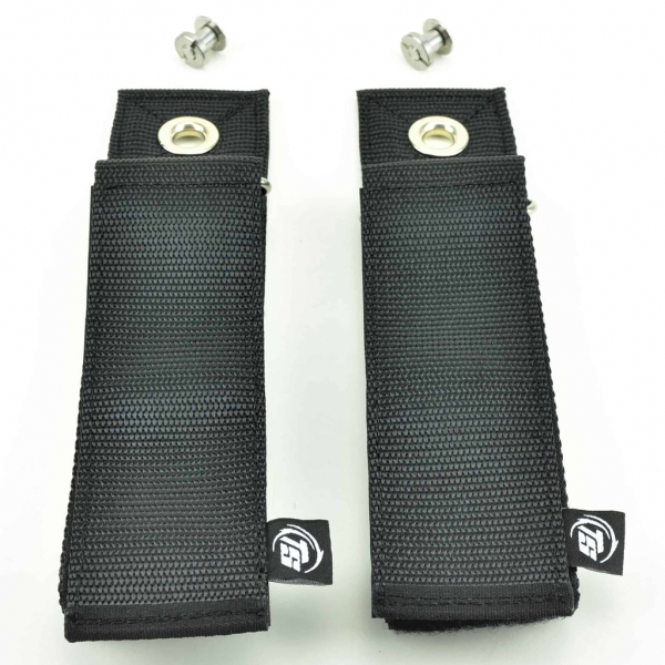 Mit diesen Straps können kleine Tariergasflaschen oder auch Akkutanks am Backplate befestigt werden. Die Größe eignet sich z.B. für Aluminiumflaschen mit 0,85 L Volumen oder Stahlflaschen mit 1 L Volumen.